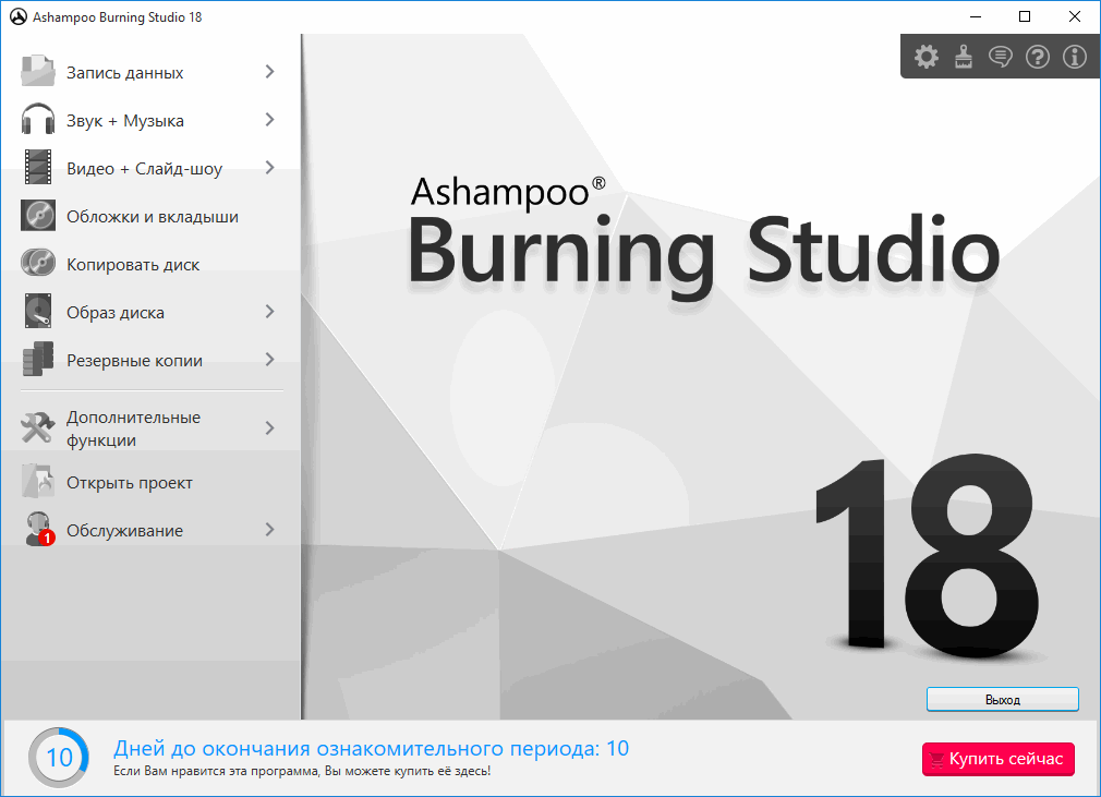 В таком случае рекомендуется обратить внимание в сторону профессионального ПО, разработанного специально для этих задач. В данном случае речь пойдёт об Ashampoo Burning Studio
