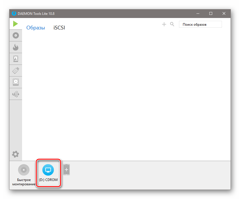 - Запустите Daemon Tools и нажмите кнопку «Быстрое монтирование».