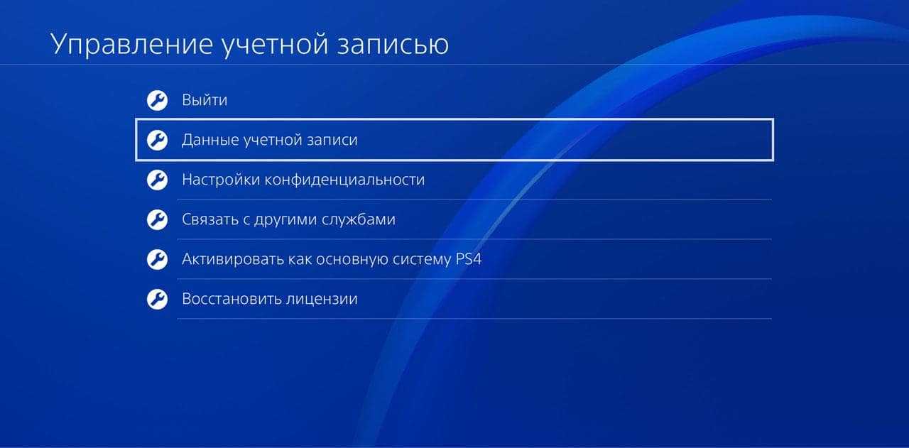- Зайдите в настройки Вашей PlayStation 4, далее в «Управление учётной записью».