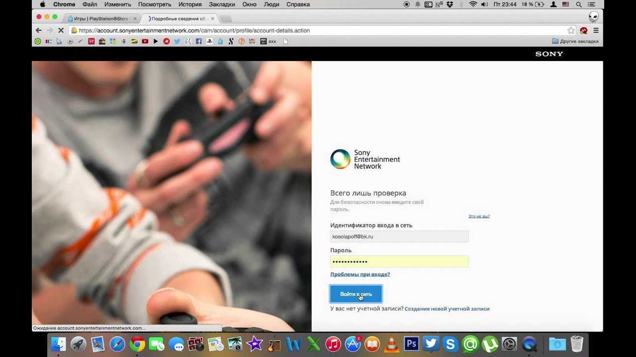 - Зайдите на сайт Sony Entertainment Network под вашей учётной записью.
