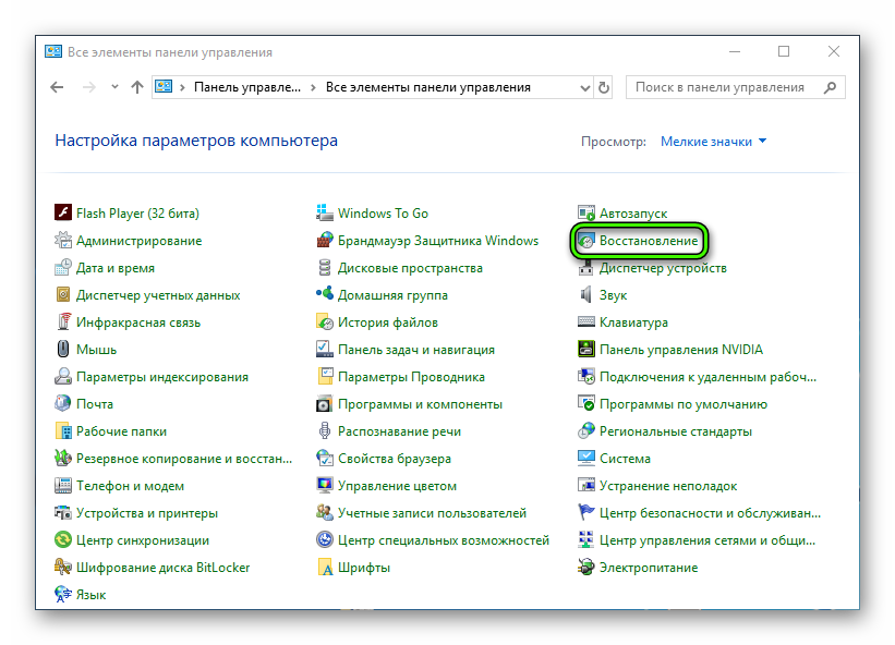 - Восстановление ОС внутренними средствами Windows.Соответствующую опцию легко отыскать в Панели управления.