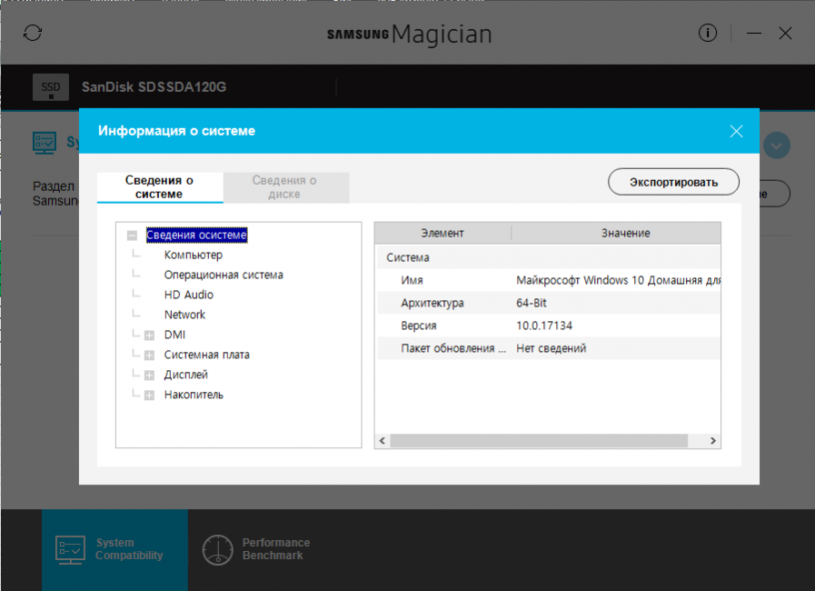 - SanDisk SSD Dashboard — включает инструменты для тестирования твердотельного накопителя (включая модель диска, ёмкость, версия прошивки, и модель накопителя, SMART отчёт) и обновления прошивки.