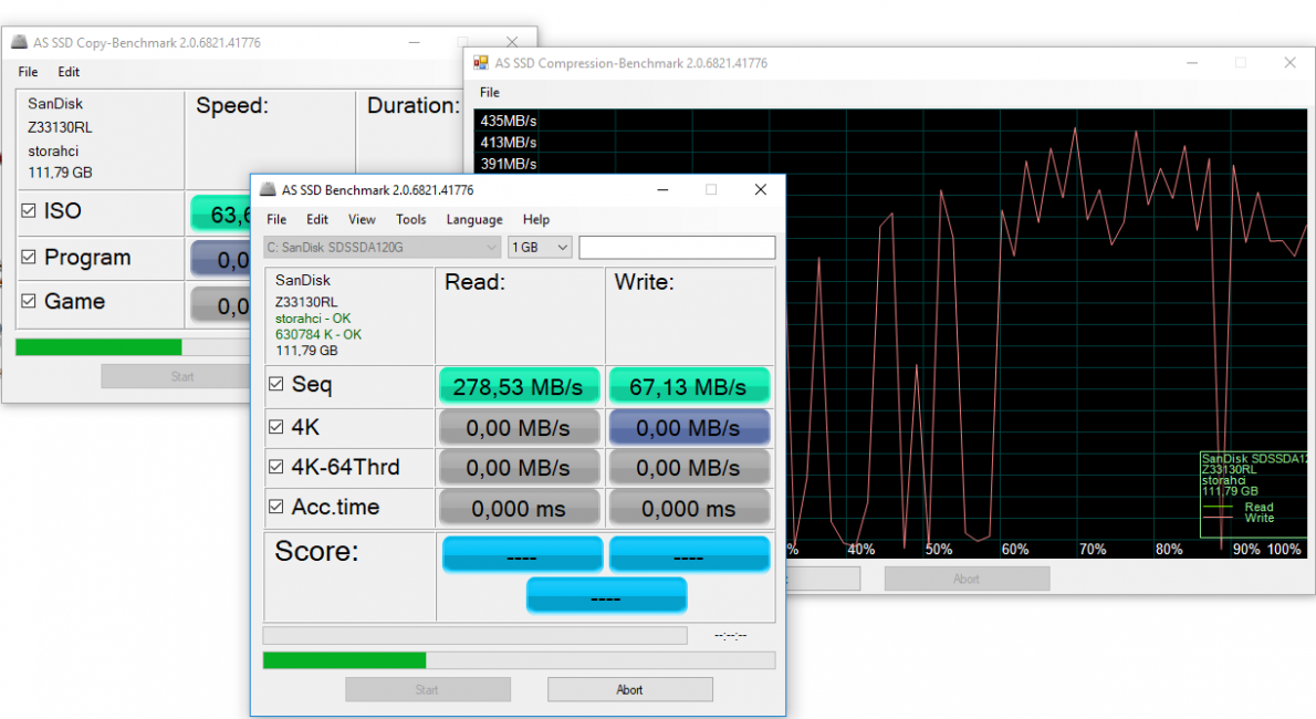 Скорость копирования — это производное от скоростей чтения и записи. Скорость доступа к сжатым файлам ниже, чем к обычным. Эти показатели есть смысл проверять отдельно.