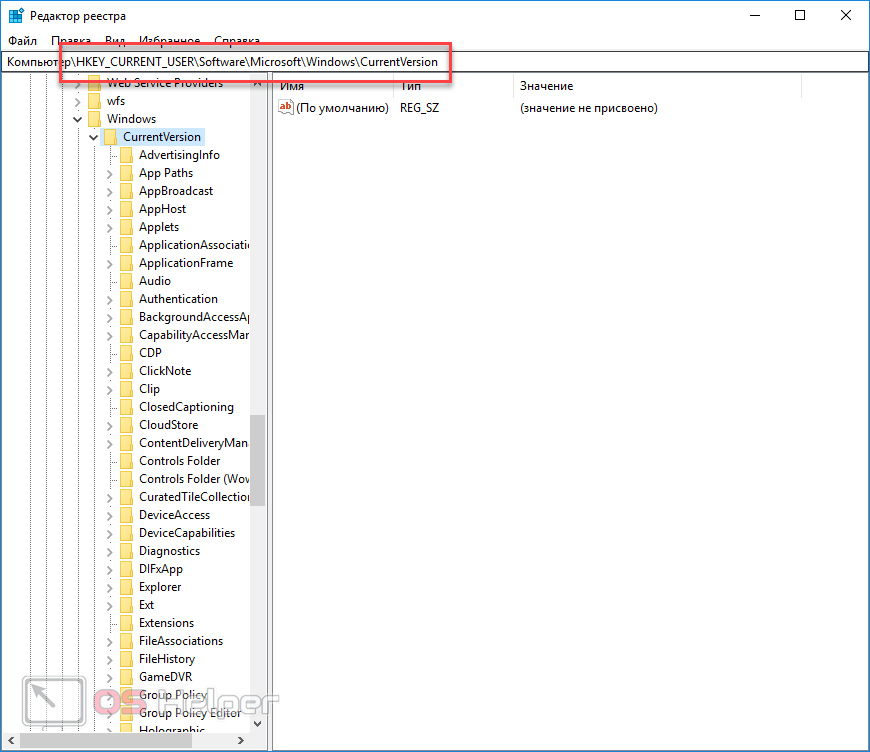 HKEY_CURRENT_USER\Software\Microsoft\Windows\CurrentVersion