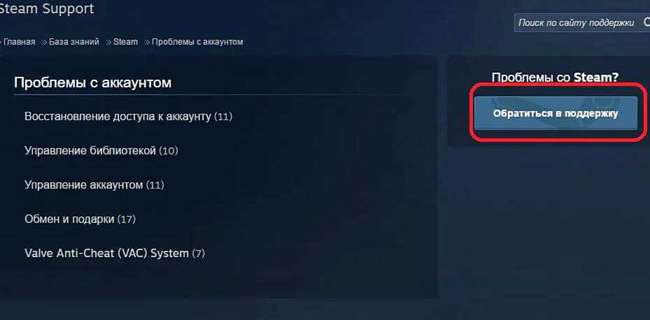 Если не удается самостоятельно решить проблему, можно обратиться за помощью в техподдержку Стим