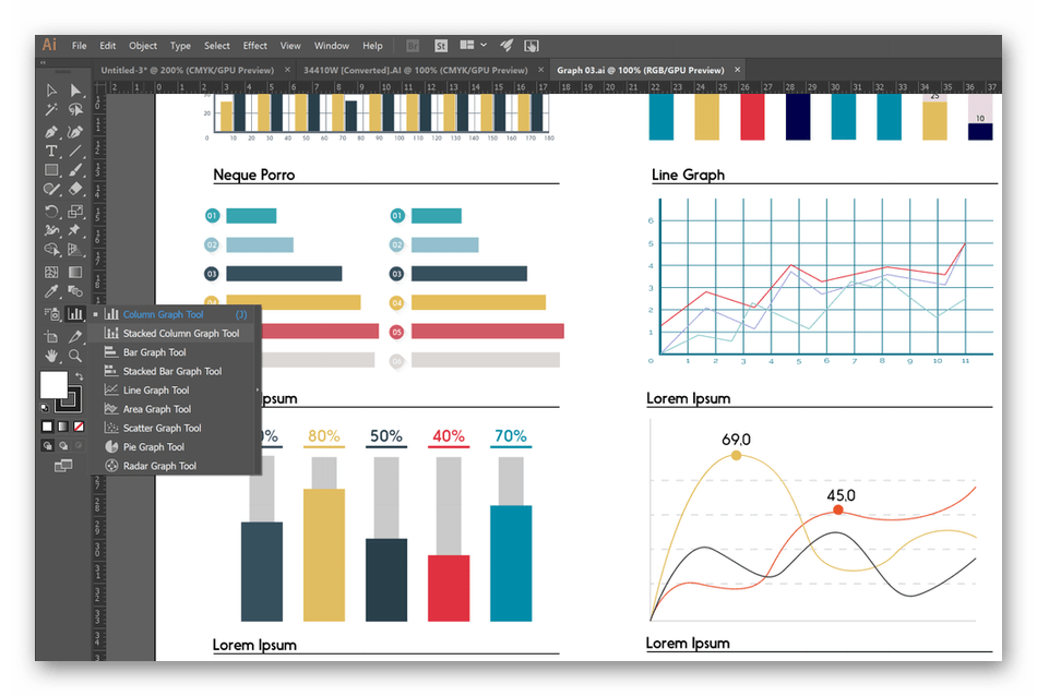 Отображение статистики в графическом режиме возможно благодаря наличию различных программ, встроенные в которые инструменты как раз подходят для того, чтобы реализовать поставленную задачу. В качестве средства формирования инфографики часто выступают популярные графические редакторы, поскольку их штатных функций вполне достаточно для отображения необходимых данных. Например, через тот же Adobe Photoshop или Illustrator это делается совсем нетрудно, особенно, когда у пользователя уже есть общие знания о том, как работать в таких приложениях.