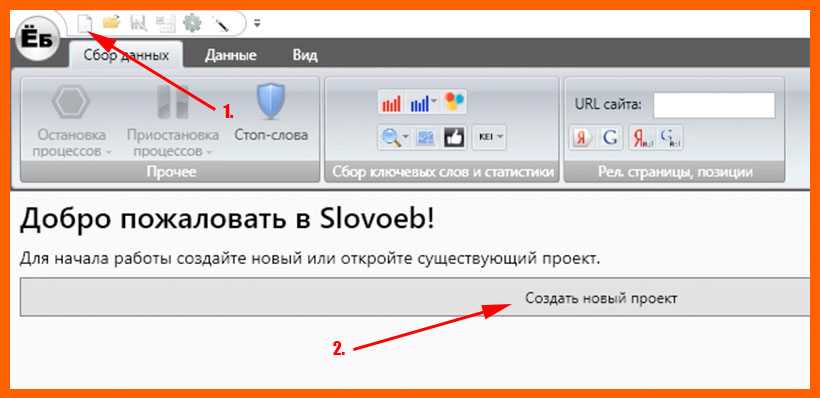 Если вы открыли строку «Сбор данных», то дальше можно приступать к работе с основным блоком. Начинающим рекомендую опробовать каждую функцию из основного блока панели программы. Так будет легче понять смысл и назначение из них. Прежде, чем приступить к парсингу, нужно создать проект!