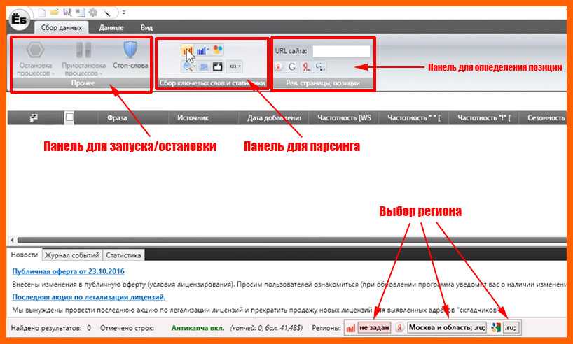 Все, что нужно сделать — прочесть и понять. «Сбор данных» — это главная функция, на которую нужно кликнуть, прежде чем выбрать приступить к операции их сбора по нужной фразе или ключевому слову. «Данные» — в этом блоке предоставляется чистка или редактирование уже введенных данных, даже по ходу проводимых операций: