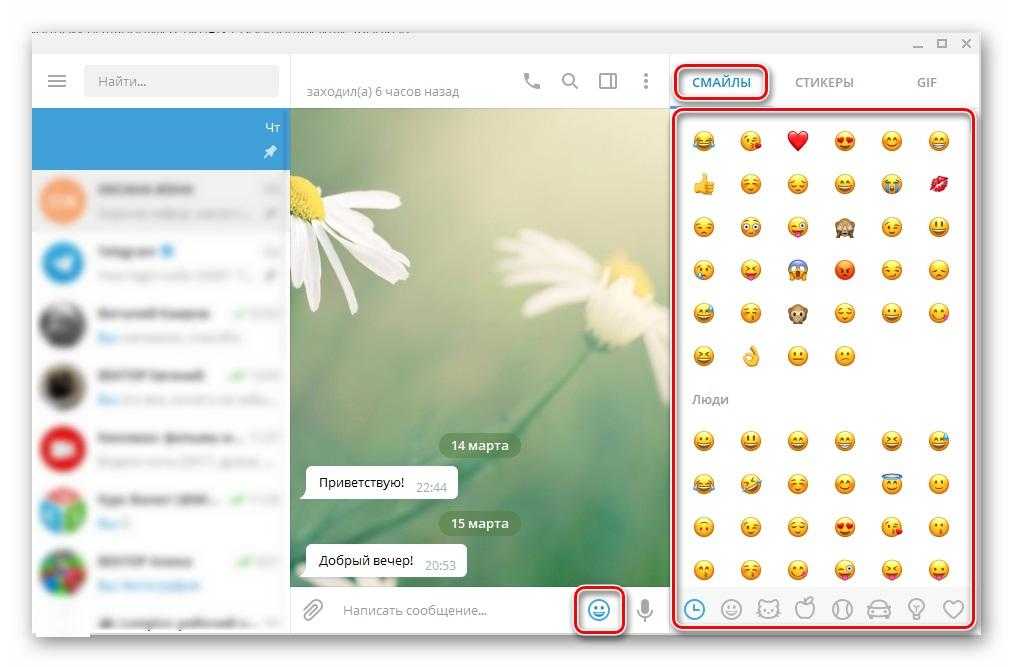 Для общения можно использовать любые средства, доступные в Telegram на смартфоне. Это и текст, и аудиосообщения, и смайлики, и стикеры.