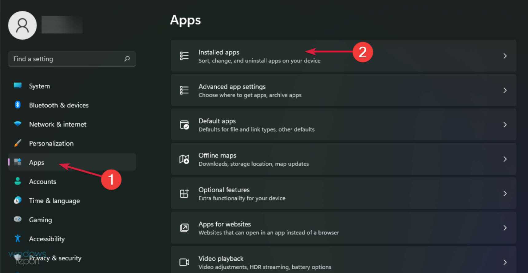 Нажмите « Приложения » на левой панели и выберите « Установленные приложения » в меню справа.