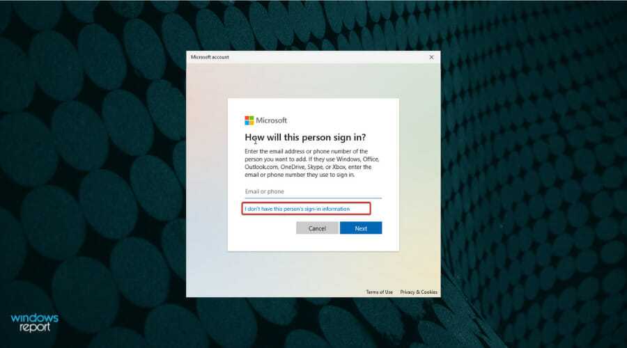 В появившемся окне нажмите У меня нет данных для входа этого человека.