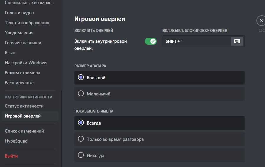 Возможность включения отображение оверлея в Discord делает игру только лучше, так как Вам не нужно сворачивать игру чтобы ответить на сообщение или посмотреть кто зашёл к Вам в комнату. Используя комбинацию клавиш можно открыть программу Discord поверх игры для управления программой. Поэтому первым делом что рекомендуется сделать после установки программа, так это включить и настроить оверлей в Discord.