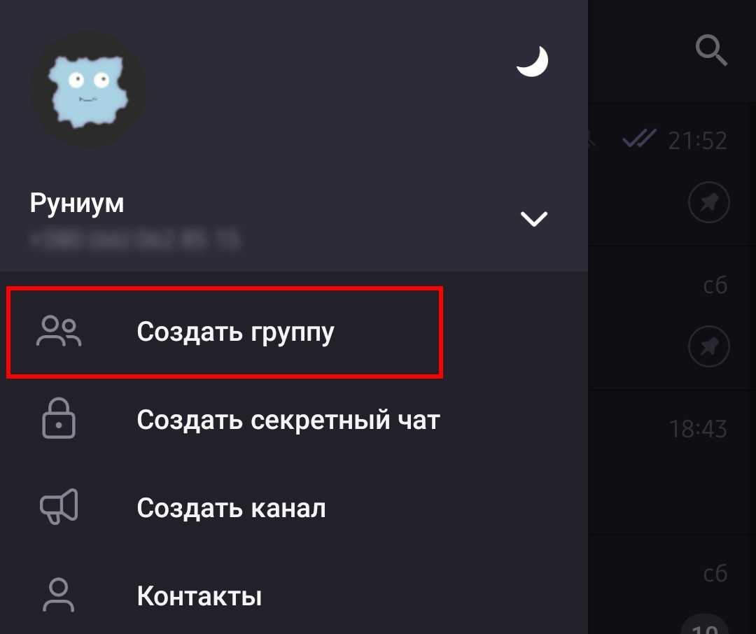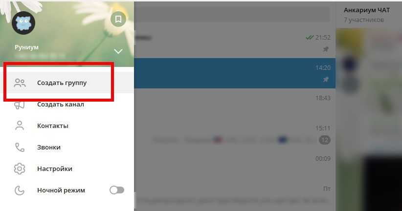 1. Зайдите в меню и выберите пункт «Создать группу» «New Group».