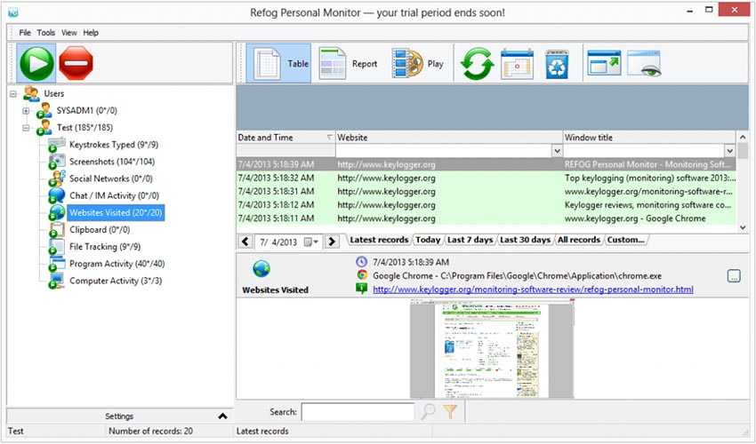 Refog Free – это программа шпион для отслеживания работы на компьютере, которая подойдет для самого простого контроля сотрудников или для защиты ребенка от нежелательных источников информации. Для чего-то большего нужна программа шпион на персональный компьютер с комплексным слежением в виде расширенного функционала.