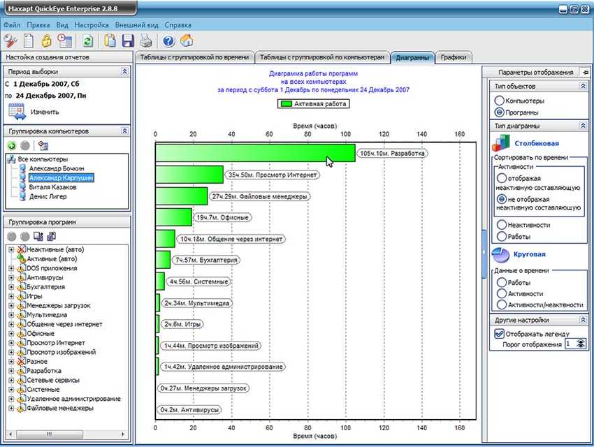 Эта программа для целевого слежения за действиями пользователя отличается от трех предшествующих решений ориентированностью. Перед вами шпион, которого оптимально использовать в небольших компаниях, потому что он нацелен на контроль взаимодействия с софтом и формирование всесторонних отчетов.