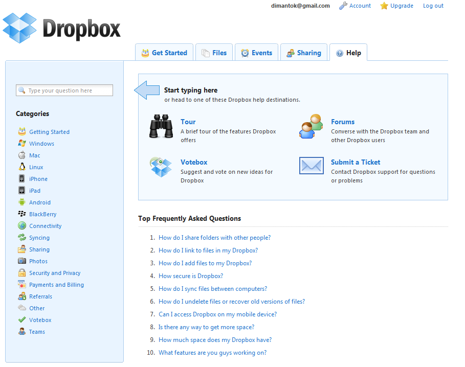 Порядок работы с Дропбокс прост. Сначала проводится регистрация на сайте сервиса. Кстати, на ресурсе выложено подробное описание системы, поэтому понять, как работает Дропбокс, не сложно. Программа-клиент устанавливается на компьютере пользователя, для начала работы вводятся имя и пароль для входа. В файловой системе автоматически создается директория «My Dropbox», содержимое которой синхронизируется с сервером и устройствами пользователя.