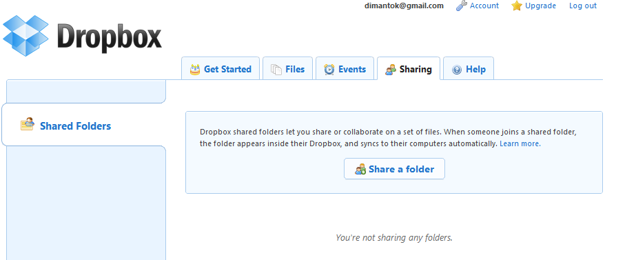 Напоследок, вкладка «Sharring» позволит вам совместно с другими пользователями управлять своей папкой или файлом. Это еще один из главных плюсов Dropbox. Вы можете совместно работать над папкой с другими пользователями. Как только один из пользователей общедоступной папки изменит ее содержимое — изменения сразу станут видны другим пользователям, которым вы дали «общедоступность» на папку.