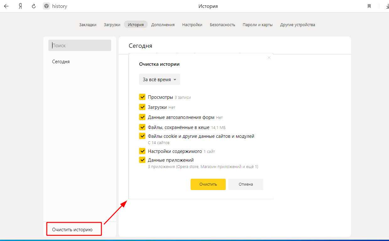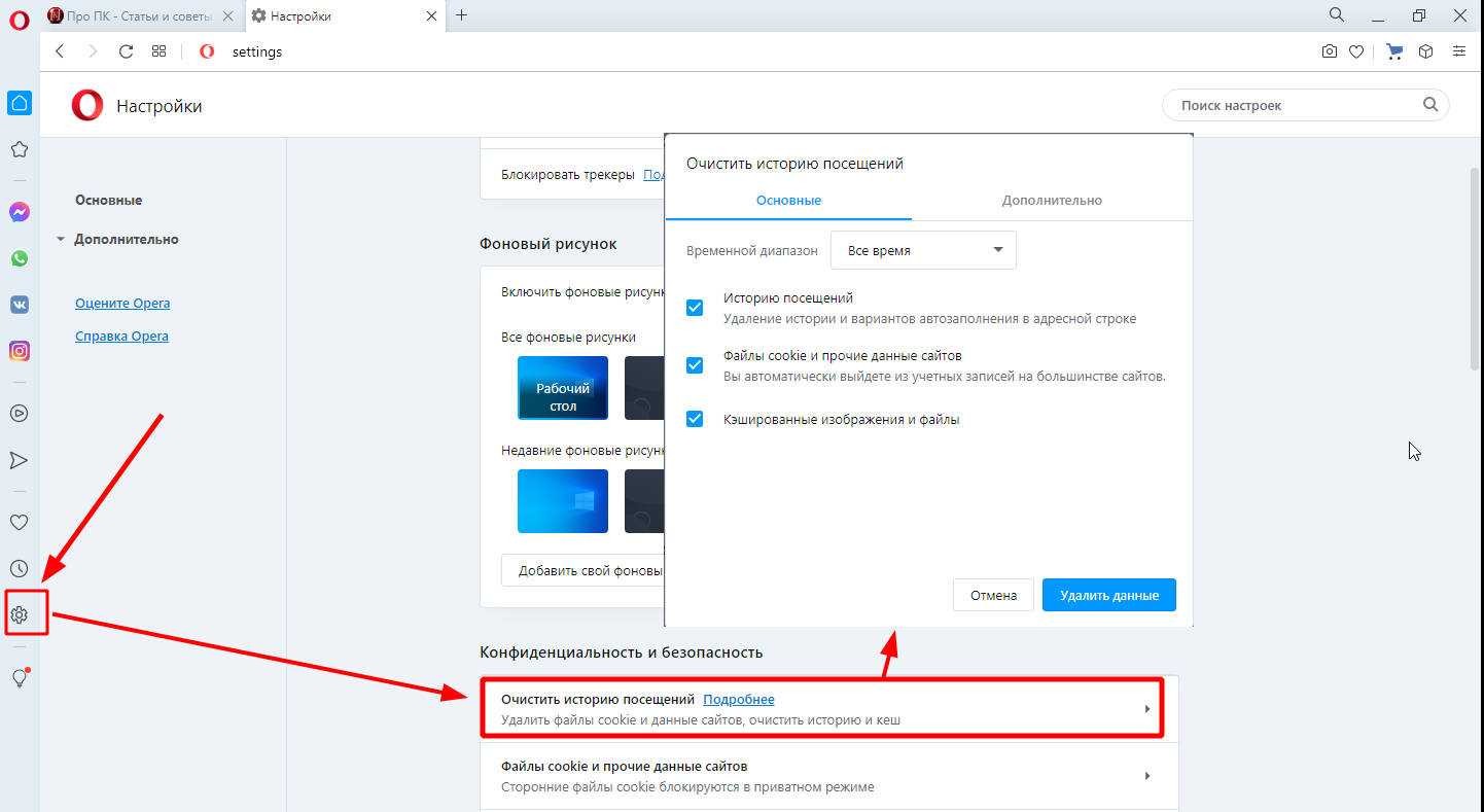 Чистим браузер Opera