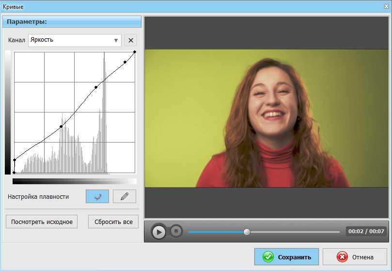 • откорректировать яркость видео – кнопка «Коррекция»;