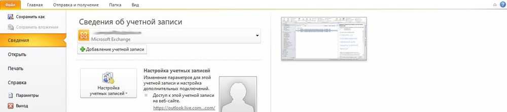 Примечание: Вы можете быстро получить доступ к Outlook Web App, щелкнув значок Файл > Инфо, убедившись, что учетная запись биржи выбрана под Информация об аккаунте, а затем щелкнув гиперссылку рядом с Настройки учетной записи кнопку.