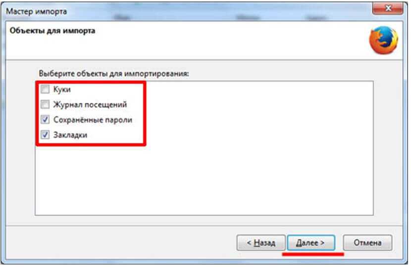 3. Выбираются файлы, которые нужно импортировать посредством отмечания галочками. Затем нажимается «Далее».