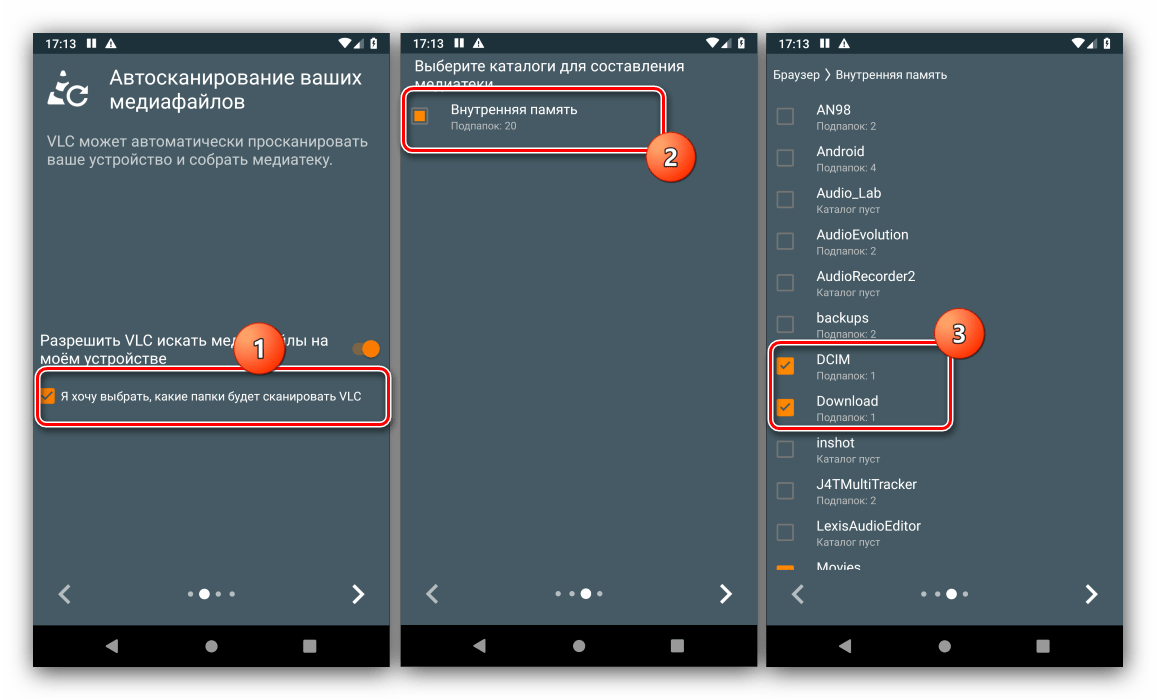 Далее выберите, хотите ли вы использовать автосканирование для поиска файлов мультимедиа. Дополнительно можно указать каталоги, в которых будет производится определение.