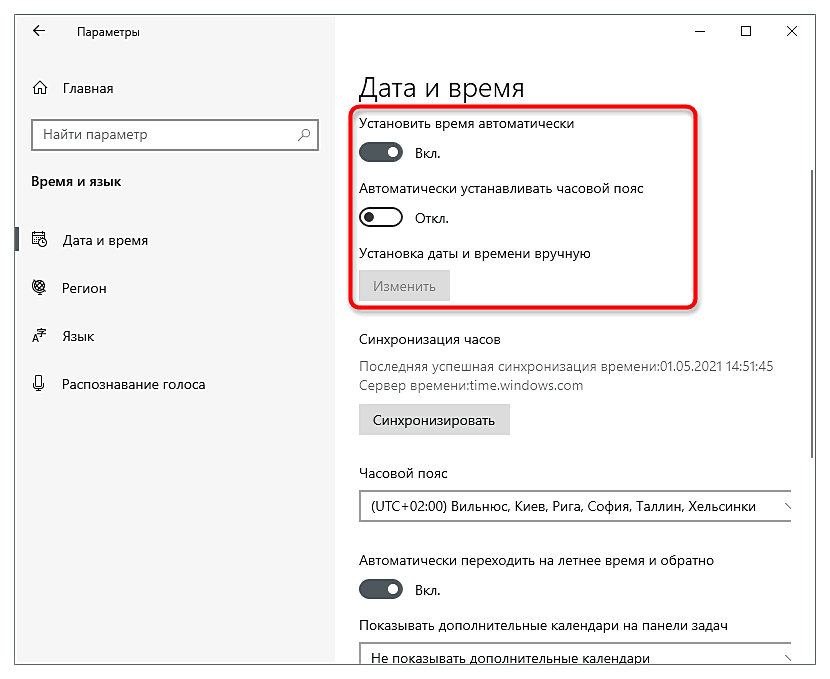 Обычно в операционной системе дата и время устанавливаются автоматически, синхронизируясь с сетью, однако иногда, особенно в нелицензионных сборках Windows, стоят ручные настройки, и они могут не совпадать с правильными. Это вызывает ряд проблем во взаимодействии с ОС, включая установку разных компонентов, к которым относится и Microsoft Visual C++ 2015. Советуем проверить корректность даты и по необходимости изменить ее на правильную, о чем написано в другой статье на нашем сайте.