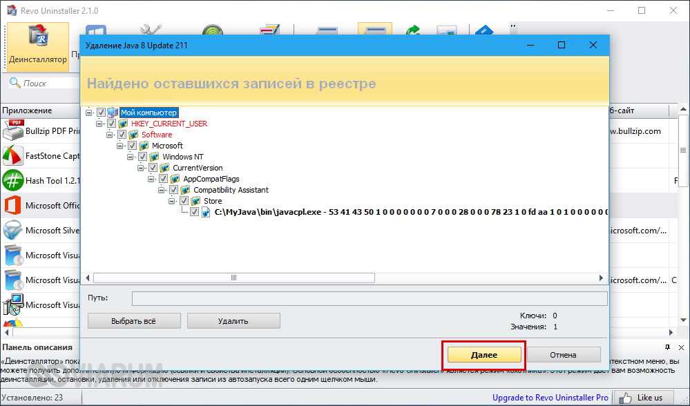 Опытные пользователи могут выполнить дополнительный поиск мусорных каталогов и ключей реестра по ключевому слову «Java», но это довольно рискованная операция, поскольку высока вероятность удалить что-то важное. После деинсталляции платформы следует перезагрузить компьютер