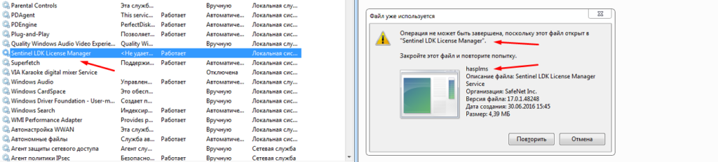 Остановка службы Sentinel LDK License Manager