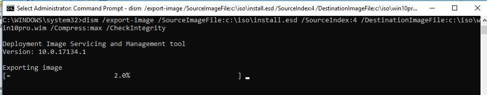 dism / export-image /SourceImageFile:install.esd / SourceIndex: 2 /DestinationImageFile:install.wim / Сжать: max / CheckIntegrity
