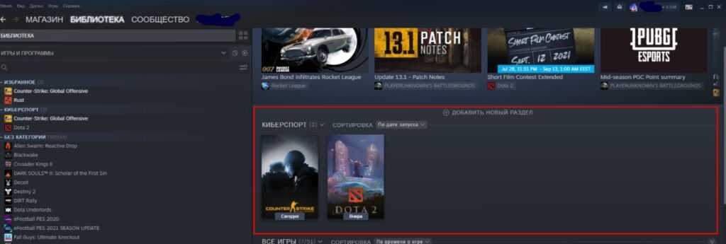 Любые другие разделы можно добавить самостоятельно или они образуются автоматически. Например, при приобретении игры с виртуальной реальностью или при добавлении библиотеки другого пользователя.