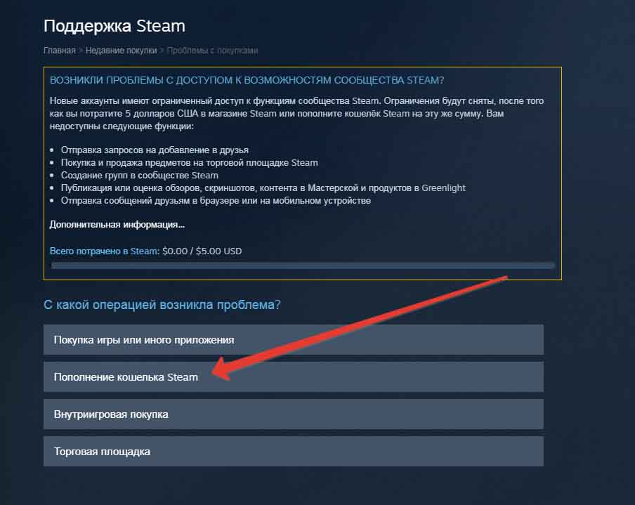 Так как пользователей Стим огромное множество людей со всего мира, то разработчики ввели разветвленную систему помощи. Самые часто задаваемые вопросы уже приготовлены в шаблоне для наибольшего удобства при проверке. Чтобы точно описать, возникшую проблему, нужно отвечать на вопросы по порядку и в итоге вы получите исчерпывающий ответ.