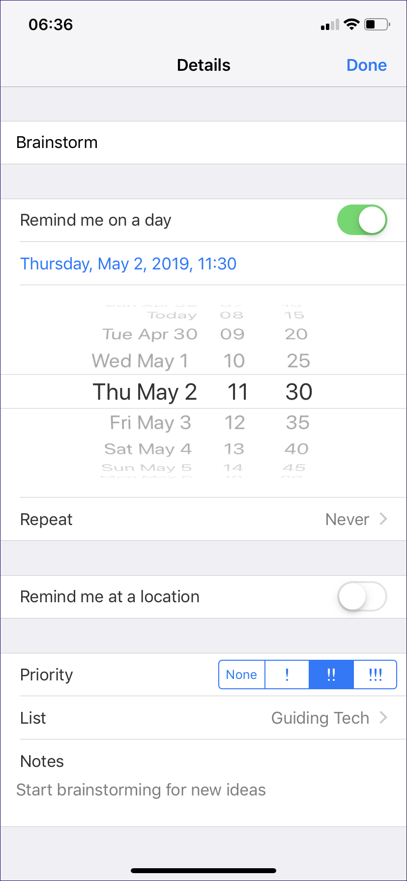Оба приложения также предоставляют возможность добавлять заметки к своим задачам, указывать время для получения уведомлений и даже задавать повторение определенных задач (ежечасно, ежедневно, еженедельно и т. Д.). Напоминания также предоставляют опцию, которая позволяет вам расставить приоритеты для задач, что делает приятное прикосновение.