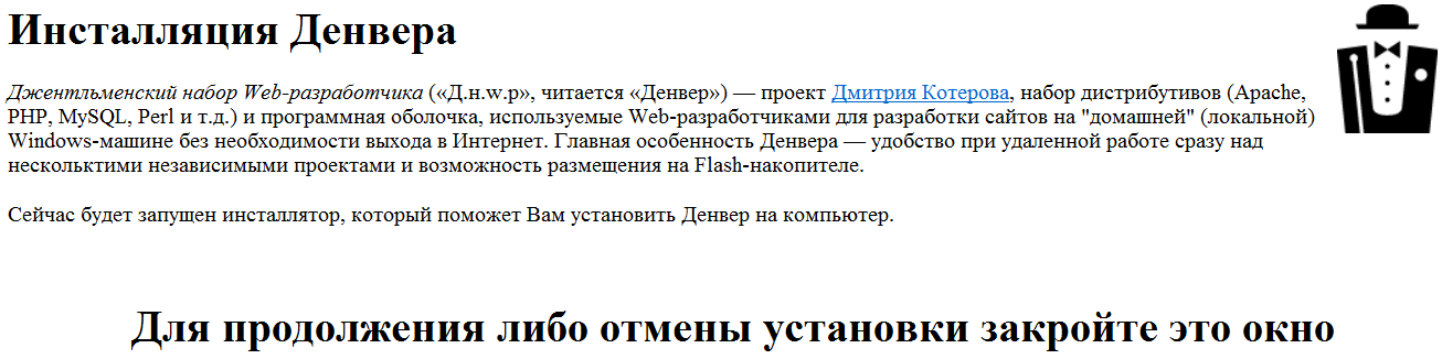 Запустите скачанный дистрибутив Денвера. Инсталлятор спросит вас: