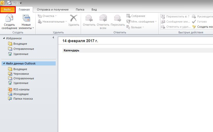 Под списком «Избранное» находится список папок «Файла данных Outlook». Изначально все содержащиеся в нём папки должны быть пусты. Туда будут дублироваться сообщения со всех подключённых ящиков, но только свежие: те сообщения, что были в ящике до его регистрации системе в Outlook, в этот список не попадут. Если вы хотите перенести старые сообщения в этот список, это можно будет сделать вручную.