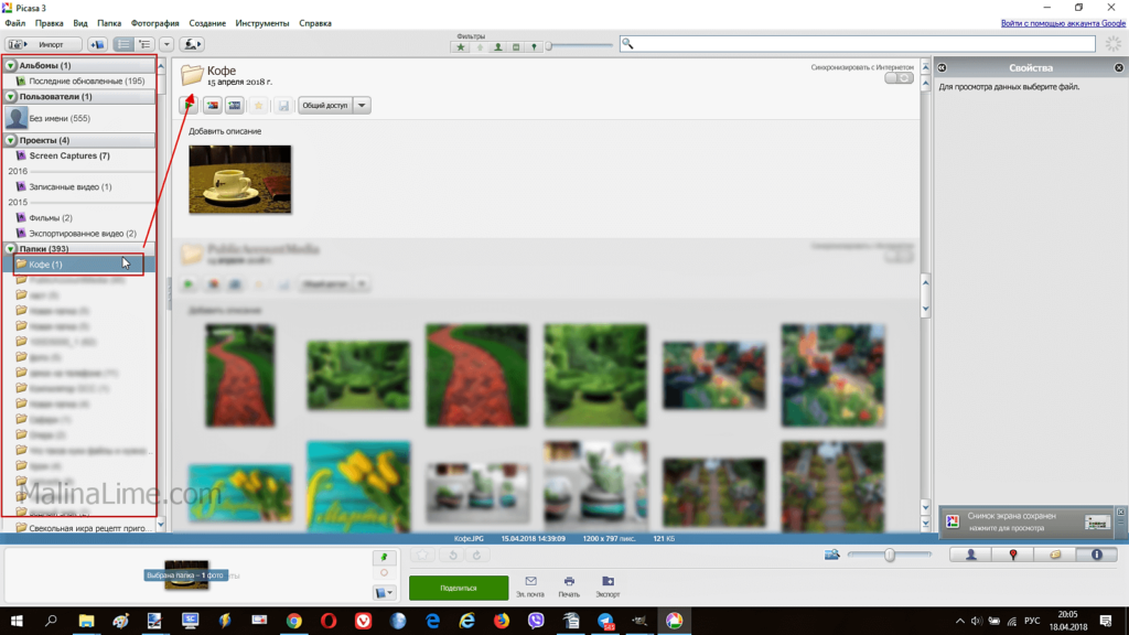 Чтобы открыть фото в программе найдите его в папке. Все папки с изображениями расположены в виде списка слева в рабочем окне программы. В папке выберите нужное фото.