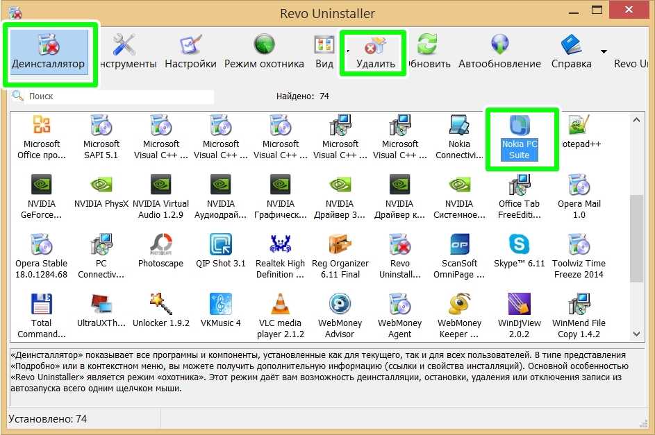 Но вернемся к удалению установленных программ с помощью этой программы. С Revo Uninstaller необходимо проделать такие шаги: