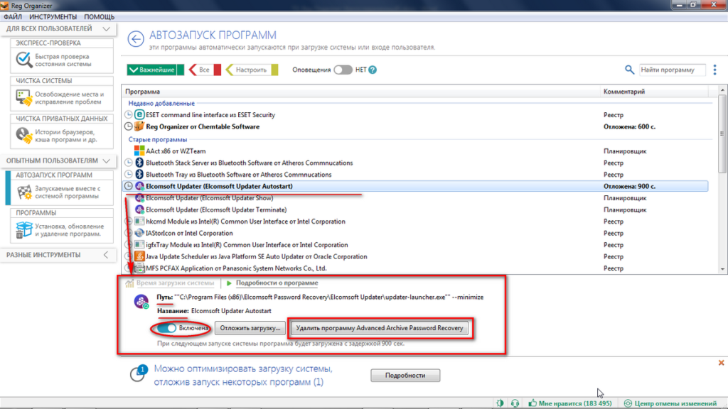 Мы познакомились с интерфейсом инструмента «Автозапуск программ». Подробнее о возможностях инструмента, а именно включение/отключение автозапуска, отложение загрузки, удаление утилит, читайте в отдельной статье, посвященной разбору продвинутых настроек программы Reg Organizer (для опытных пользователей).