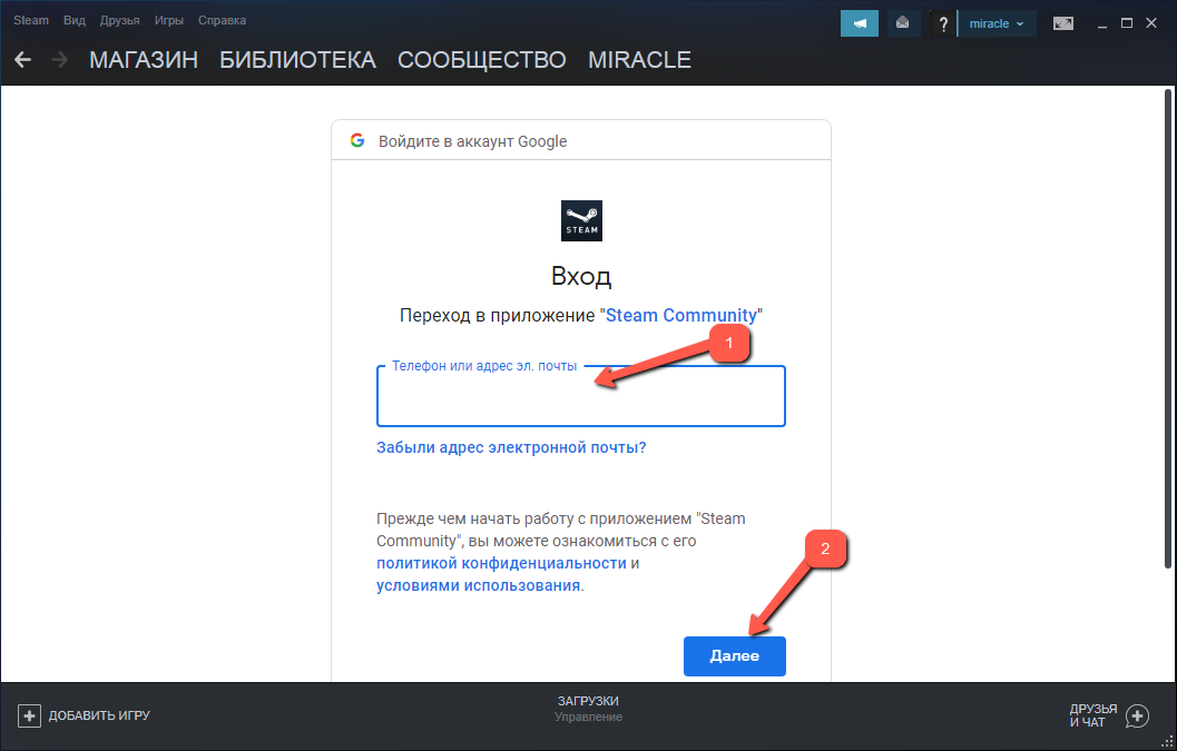 Следующий шаг – дать разрешение на доступ Стиму к аккаунту Google.