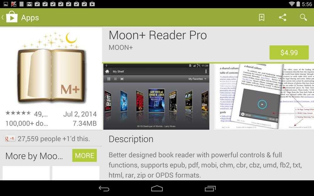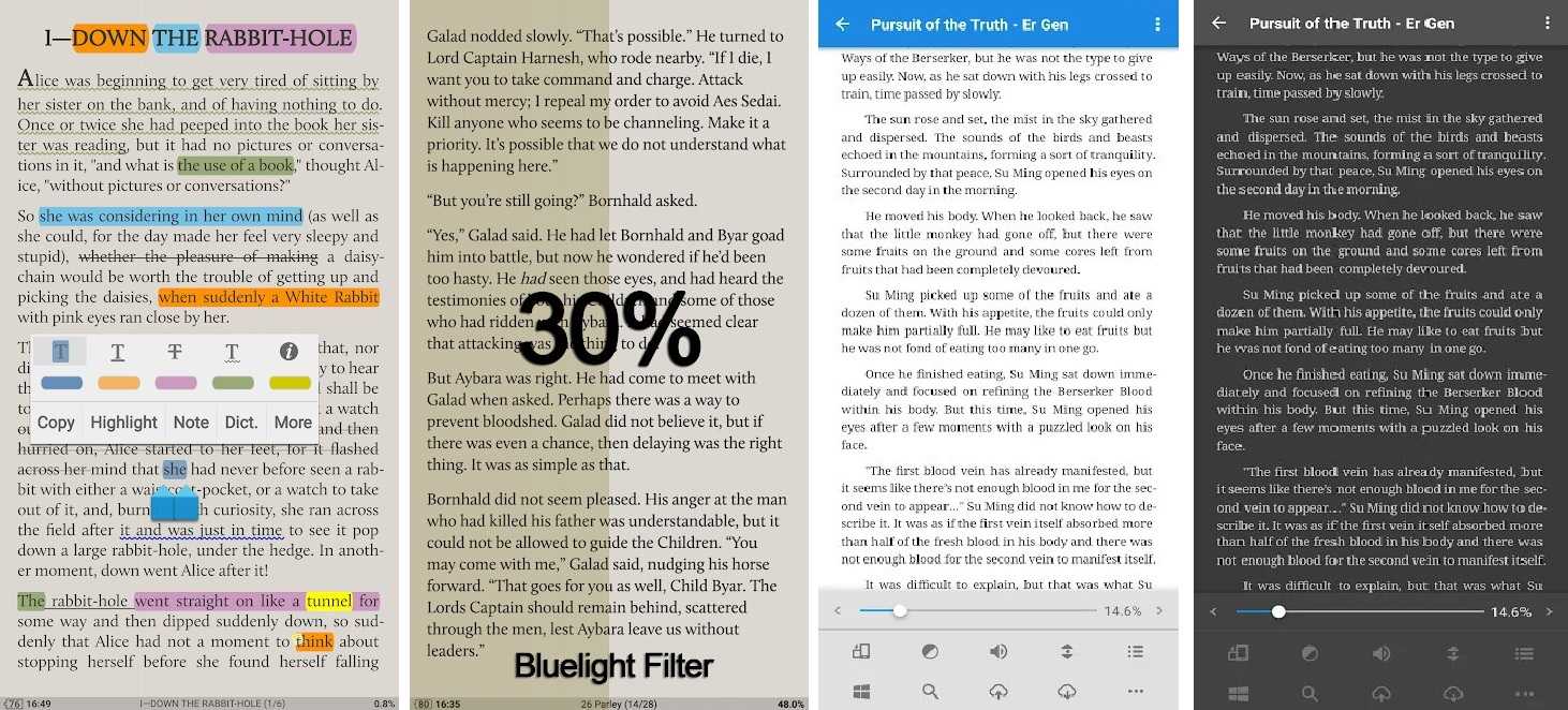 Они более удобны для чтения и имеют приятный для глаз интерфейс с гибкой системой настройки яркости, контрастности, размера шрифта и так далее. Наибольшим распространением среди таких программ пользуется Moon+ Reader.