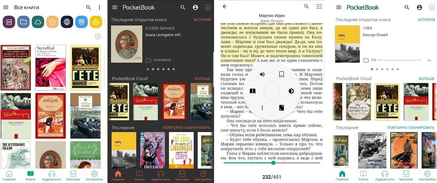 Что касается приложения PocketBook для Андроид, то здесь все наоборот: это одно из наиболее удачных приложений для чтения книг в формате FictionBook. Разработчики добились этого за счет удобной навигации по библиотеке и реализации кругового меню.