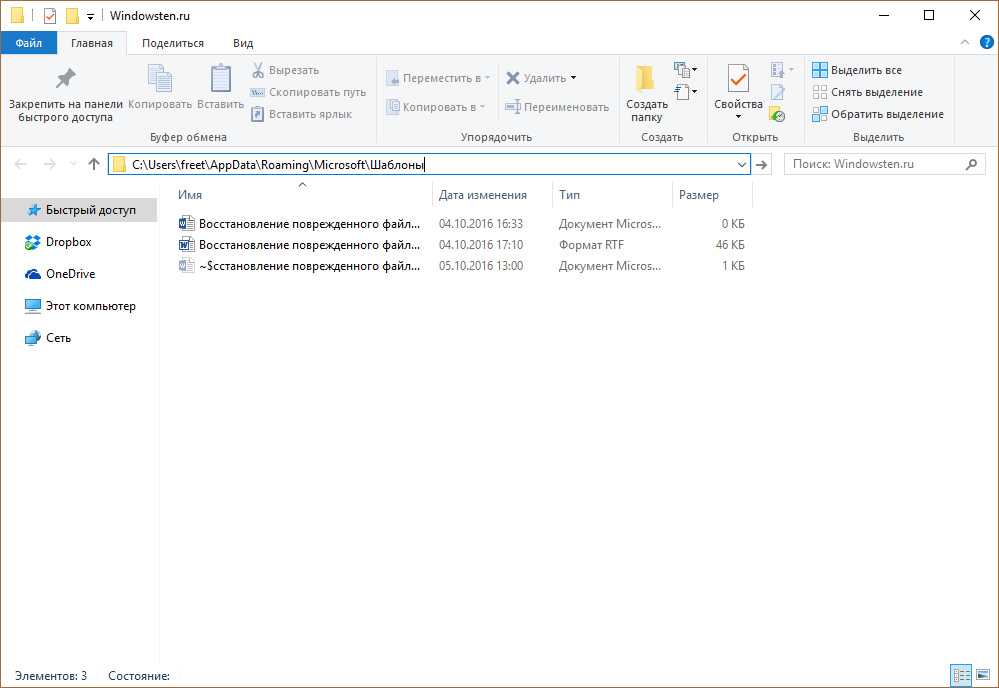 - Зайти в Проводник и написать в адресную строку: %userprofile%appdata oamingmicrosoftШаблоны. Для английской версии последнее слово заменить на templates.