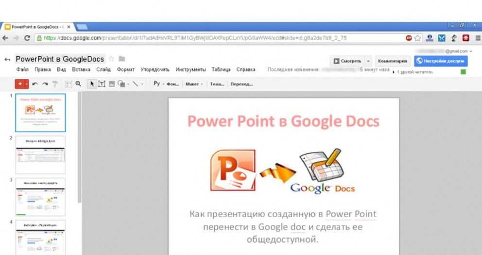 Этапы преобразования файлов Повер Поинта в формат гугл-документа: