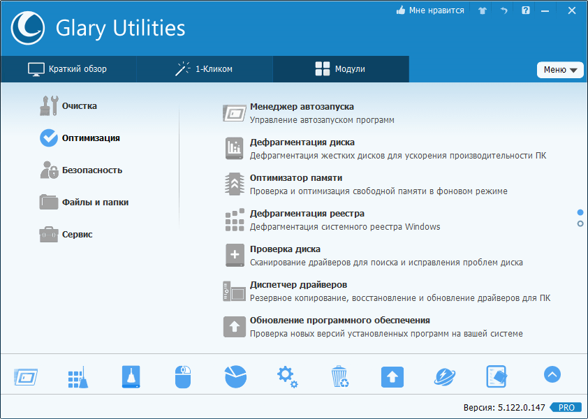 Оптимизатор Windows 10 Glery Utilites
