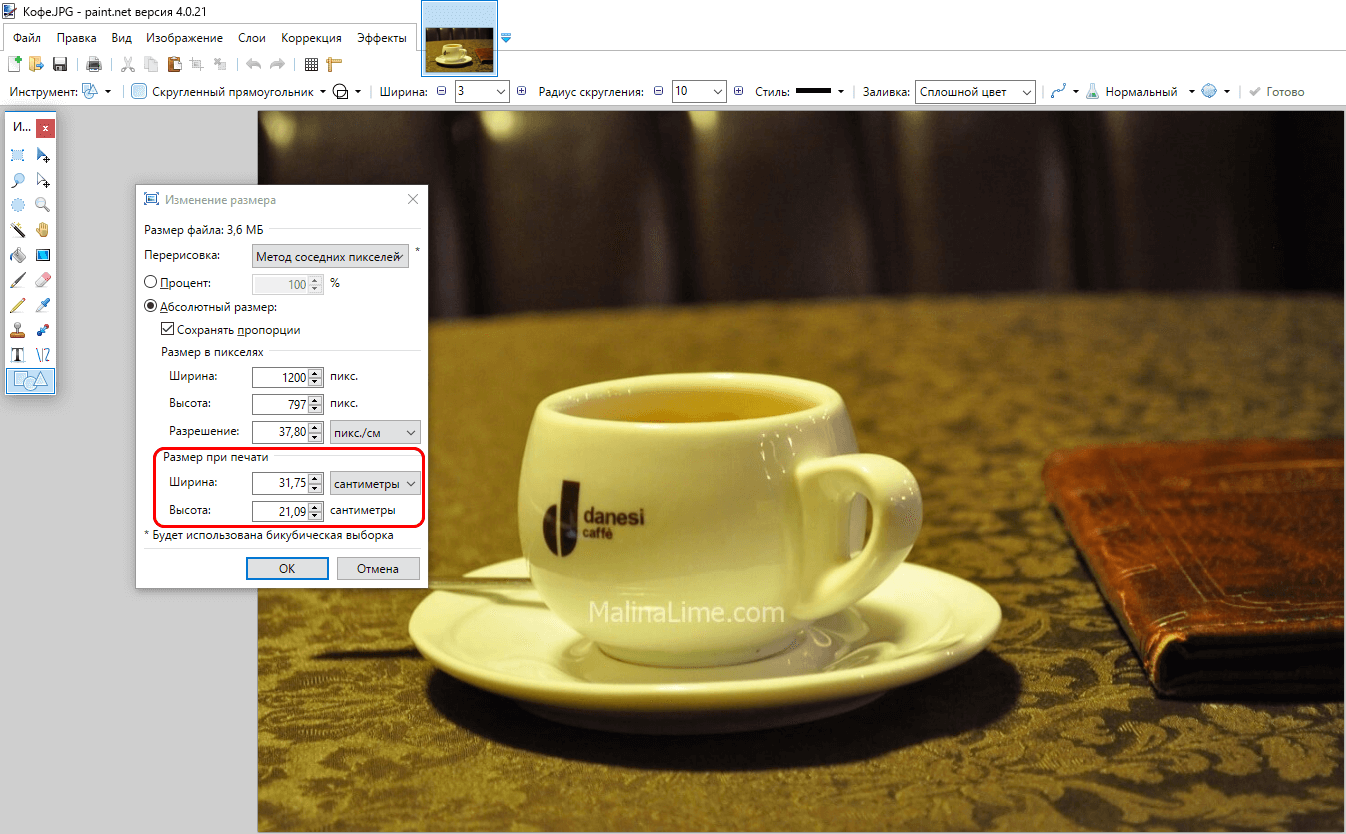 Увеличить размер фото в paint.net