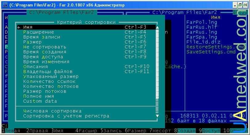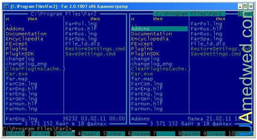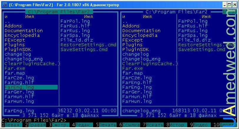 FAR позволяет выполнять большинство необходимых действий: просматривать файлы и каталоги, редактировать, копировать и переименовывать файлы, имеет удобные функции настройки пользовательских меню и обладает рядом других полезных возможностей.