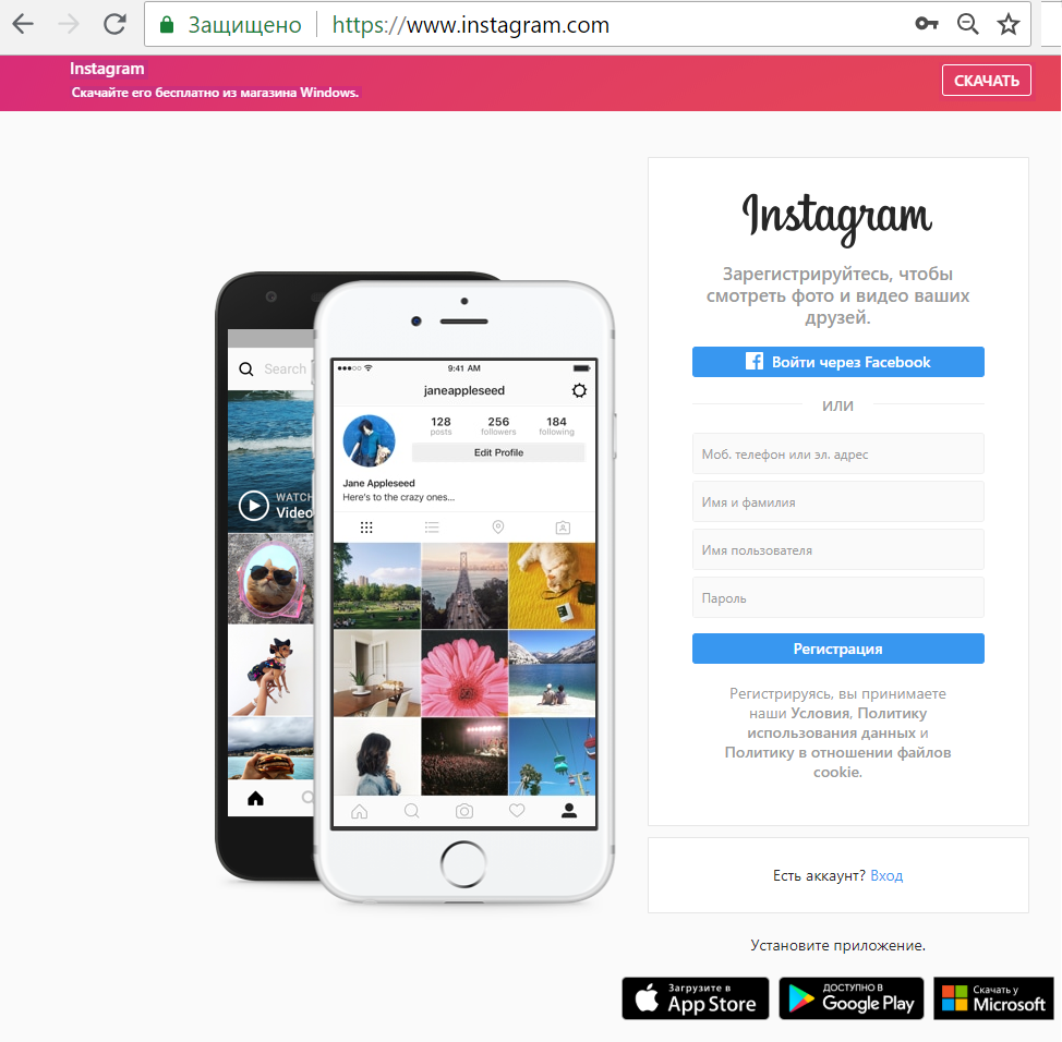 Регистрируемся в Инстаграм на компьютере