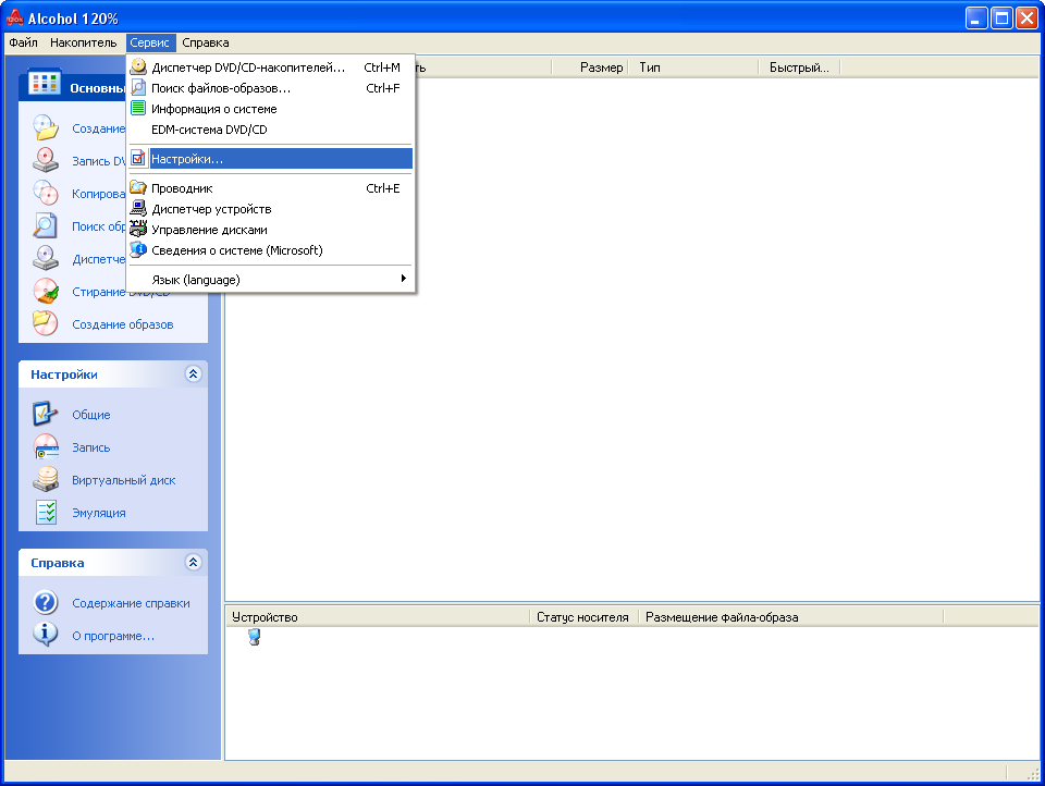 После установки и регистрации Alcohol 120% первым делом необходимо провести некоторые предварительные настройки, в частности установить несколько виртуальных приводов и ассоциировать программу с виртуальными дисками, чтобы она с ними работала по умолчанию.