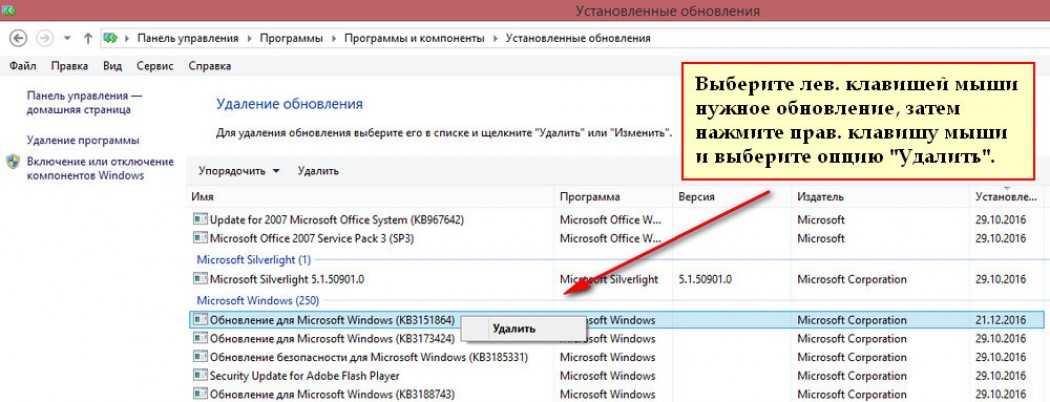 В появившемся списке установленных обновлений выделите левой клавишей мыши нужное, затем нажмите правую клавишу мыши и в выпадающем меню выберите пункт Удалить. Для завершения операции подтвердите свои намерения, нажав ОК и перезагрузите компьютер, чтобы сделанные изменения вступили в силу.