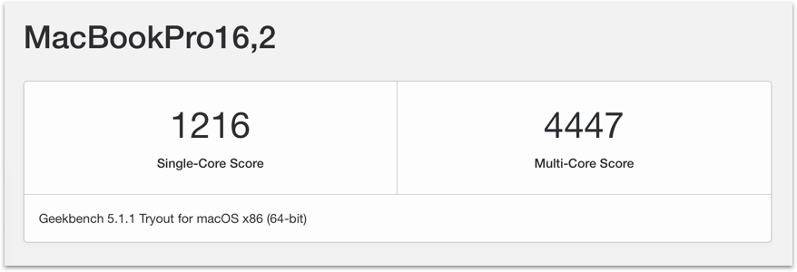 Результаты теста Geekbench MacBook Pro с процессором i5-1038NG7